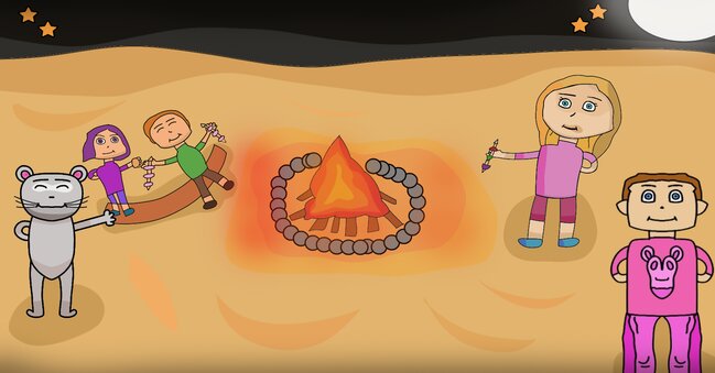 יש אחת שנמצאת בצד ימין, שמחזיקה שיפוד עם ירקות צלויים מהמדורה. יש אחת ששוכבת על בול הקרש ומחזיקה תפוח אדמה רך ועסיסי, ולידה יושב מישהו שהחליט לא לתת יחס לקלוריות והוא אוכל 2 שיפודים של מרשמלו צלוי!