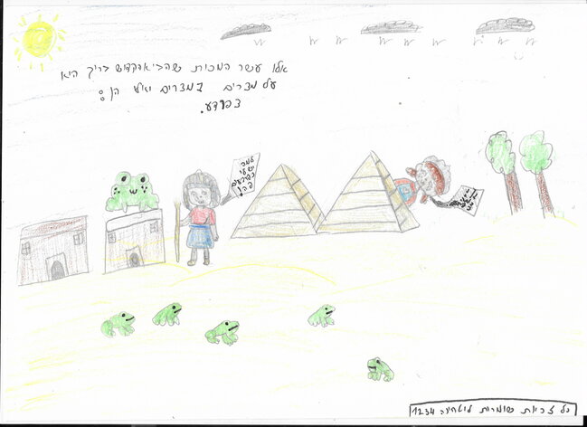אם לא רואים מה כתוב בתמונה הנה מה שרשום פרעה: למה יש פה צפרדעים?!?! אני (וטחינה1234): יוו כמה צפרדעים יש פה!! |