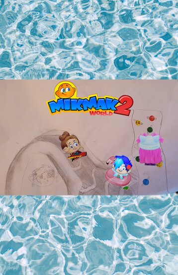 אז המשימה זה לעשות פארק מיתנפחי מים אז ציירתי מגלשת מים מתנפחת וקיר תיפוס בסגנון מיקמק (ברור)