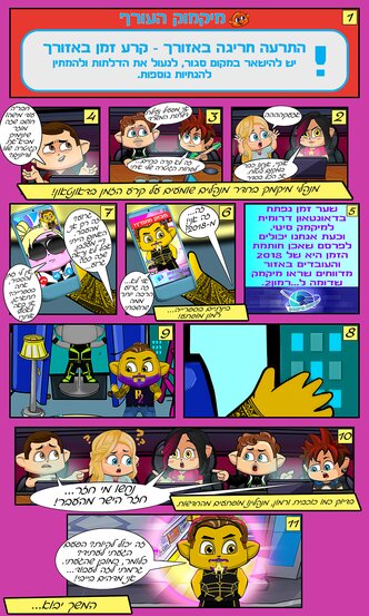 10. *חזרה לצוות מיקמק שרואים את החדשות.* צוות מיקמק: "תראו מי חזר, חזר הישר מהעבר!".
