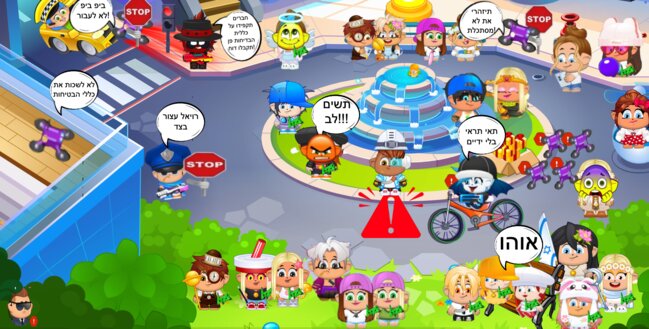התמונה מציגה עוד יום עמוס במיקמק סיטי ניתן לראות את המיקמקים משתוללים על גבי האופניים, על אף שהחפנים מתריעים לו לעצור.