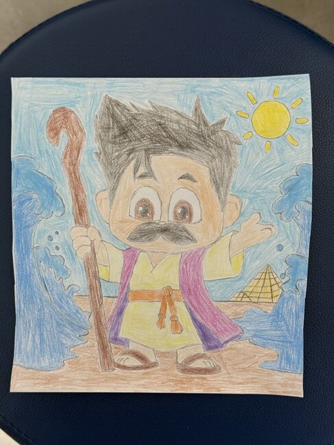 אני ציירתי את דמות המיק שלי בתור משה רבינו מקריעת ים סוף מהגדת פסח!