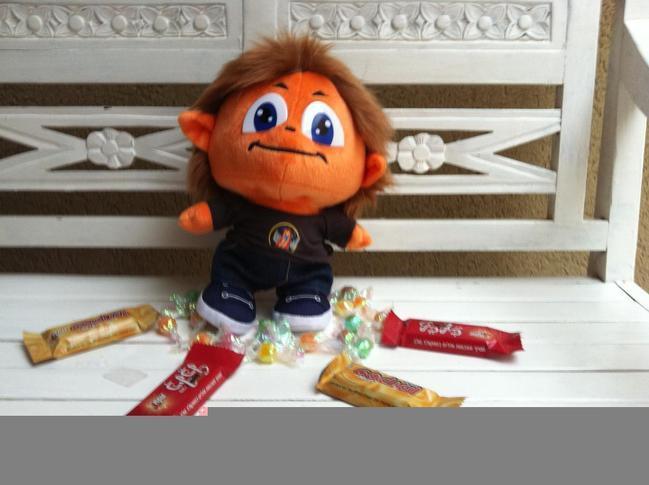 מקס ישב על ספסל פיזר את הסוכריות שלו ואכל