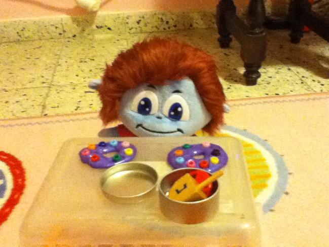 זואי אוכלת אוכלת ארוכה ומקבלת מתנת חנוכה סביבונים