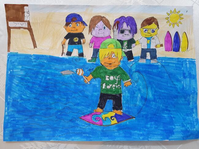 שלום לכולם כאן המלך11928 אני ציירתי את המימק שלי נהנה יחד עם מקס, זואי, ג'ימבו וסאני בים אני השקעתי בציור זה כמה ימים אגב מי שרוצה הקדשה שירשום בתגובות מקווה שתאהבו שלכם המלך11928