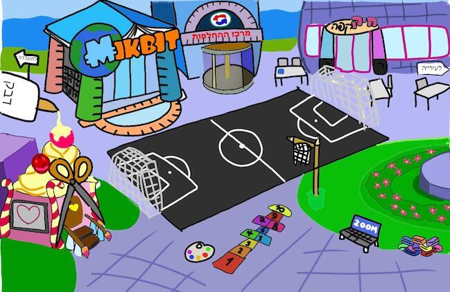 למשל, הספסל הפך לספסל מחשב עם zoom, והערימת אבנים הזו שיש בה משחק כלשהו הפכה לערימת קלמרים, והשעון הפך לסל כדורסל, שעשוי מעפרונות גם. והמעבר לביוב הוא דרך הפלטת צבעים, והמבנה של המיקביט בנוי בין היתר מסרגלים, וספר/מחברת בתור גג, ומחשבון בצד. ובמקום השולחנות הרגילים מחוץ למיקפה, עשיתי שולחנות של בית ספר. וגם יש מגרש כדורגל וקלאס. ובכניסה למיקפה בצדדים יש שני מרקרים גדולים. ויש עוד כל מיני פרטים קטנים שלא פירטתי כאן...