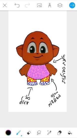 חולצת ספירלות, מכנסי משולש, ונעלי עיגול.