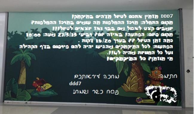 אתם צריכות לפגוש אותי במיקפה בשרת אבטיח מחר בשעה 12:30 ניפגש שמה .. |