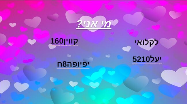 אני יודעתתתתתת כמעט מאה אחוזזזזזז עליתי עליךךךךךךךךךך יעל5210 (נועה) אין מצב שלא כןןן אני בטוחההההה |