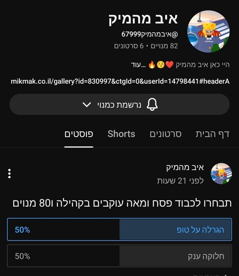 אני רוצה לעבוד מאה עוקבים שמונים מנויים ולכבוד פסח לעשות משהו ענק