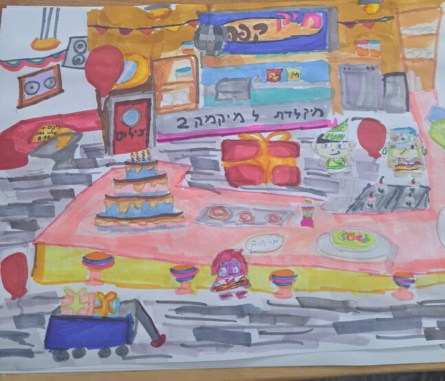 יום הולדת למיקמק עם עוגה מפנקת,אלמוג שבאה מודדם ועזרה לסדר שקד מתגנטת את הקאפרייקים והשק מתנות המושלם מטבח מרשים ופינת צילום מפה וקשוטים בכל מקום כדור דיסקו שרק מחכה לפעול אוכל וממתקים תפומיק ודורמיק במטבח מחכים להיפתח סלט הפירות שרק מחכה שיאכלי אותו וכיסאות צבעוניים... ועכשיו לחלק העצוב כיסא השמור לזלמן שזר ז"ל דמות שמפויעה במיקמק לא לעיתים רחוקות אלה קרובות....