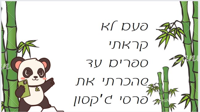 פעם לא קראתי ספרים עד שהכרתי את פוצולופופום(: אל תשאלוווו^^ ופרסי ג'קסון זה הספר הכי טוב אברררר3: ❤️ |