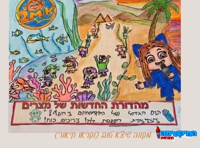 מה רואים פה בעצם- אזז החלתתי שמיקמק שלי תהיה כתבת שטח אבלל יש טויסט היא בעצם בקריעת ים סוף ומדווחת על מה שקורה שם רגע מה ציירתי -אז ציירתי את קריעת ים סוף ויש מלא מיקמקים שיוצאים מעבדות לחירות חחח ציירתי גם קצת דגים ואלמוגים ועצות ומרחוק ממש יש פירמדות טוב מקווה שאהבתם ניצ❤️