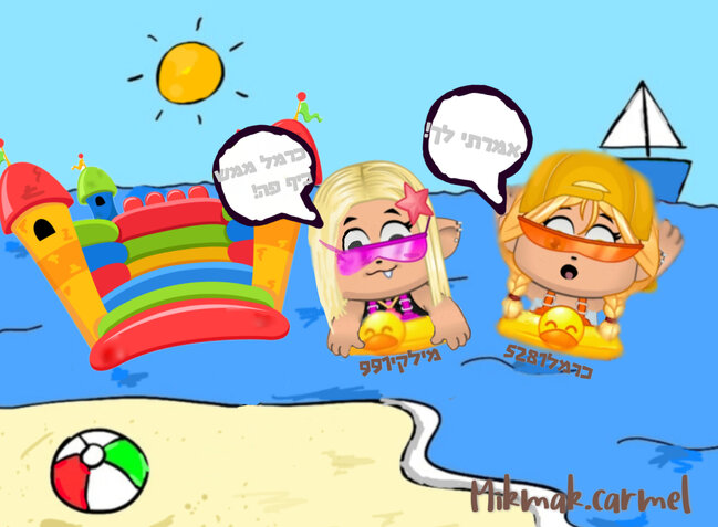 אז אפשר לראות ביצירה שהכנתי שתי חברות מבלות בים, ויש שם מתנפח מים מקמיק!︎