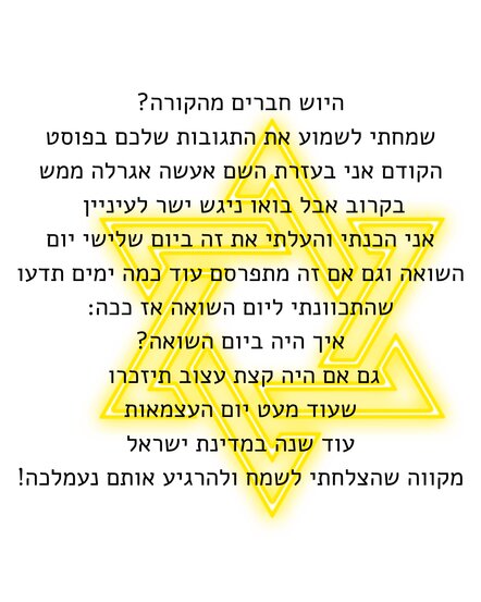 היוש חברים אזזזזזזזז היום יום השואה והגבורה וגם במיקמק זוכרים את השואה ואת הנצים וכו...