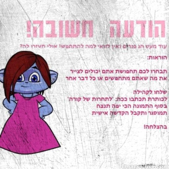 אני נרשמתי ועם לא אזכה לא נורא ומי שיזכה כל הכבוד!!!!!!!! |