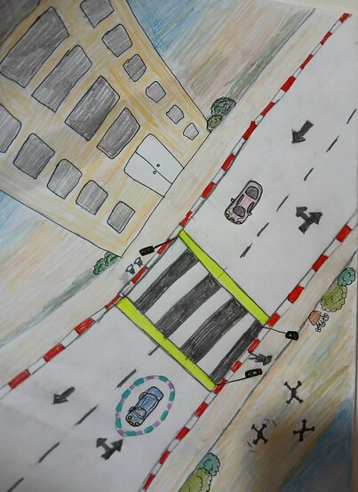 הייי מה נשמעע? אז אני משתתפת במיקשימה החודשית :) ביצירה שלי אפשר לראות צילום אווירי של כביש עם מעבר חצייה ובניין גבוה, ובנוסף יש 2 מכוניות על הכביש בכיוונים שונים והולכי רגל שרוצים לחצות את הכביש. הסיטואציה מתאימה בעיקר ללילה- משני צידי מעבר החתימה יש פסים צהובים זורחים כדי לסמן גם לנהג וגם למי שעובר במעבר חצייה, שישימו לב. אפשר לראות גם שי 3 רחפנים שהם רחפנים מהירות- כמו מצלמות מהירות, רק שהם מסיירות לאורך הכביש ומוודאות שכולם נוסעים במהירות המותרת. דבר שלישי ואחרון הוא ששימו לב- המכונית הכחולה (שבה אני נמצאת בתור הנהגת) מוקפת באור כחול-סגול, שהוא מאיר כשמתקרבים למעבר חצייה- זה שימושי בעיקר להולכי רגל אבל זה לא מחליף את הפסים הצהובים. וזהווו ככה בעזרת 3 הפתרונות החדשים האלו אפשר לשמור על זהירות בדרכים !