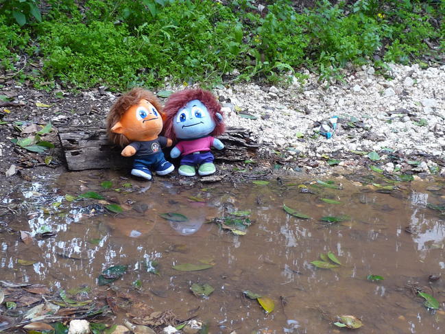 זואי ומקס עומדים ליד שלולית ובכותרת כתבתי 2 זואי ו2 מקס כי יש השתקפות מהשלולית