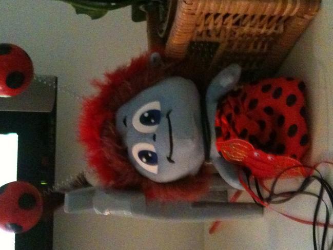 איזה חמודה זואי בתוך תחפושת של חיפושית