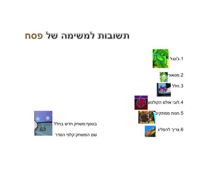 תשובות למשימה (של פסח)