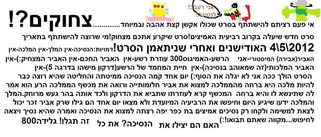 אני יכולה להשתתף? אני רוצה להיות הנסיכה פליז טוב? אם כן תפגוש אותי בקרחת היער ביום ראשון ה 5.5 טוב?