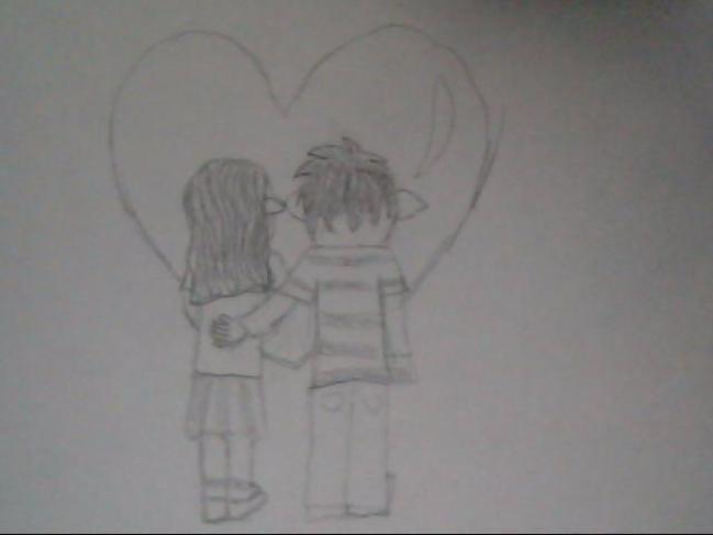 היה לי משעמם אז ציירתי שני מיקמקים מאוהבים, הם מסתכלים על השקיעה ביחד. (כל כך מתוק!)