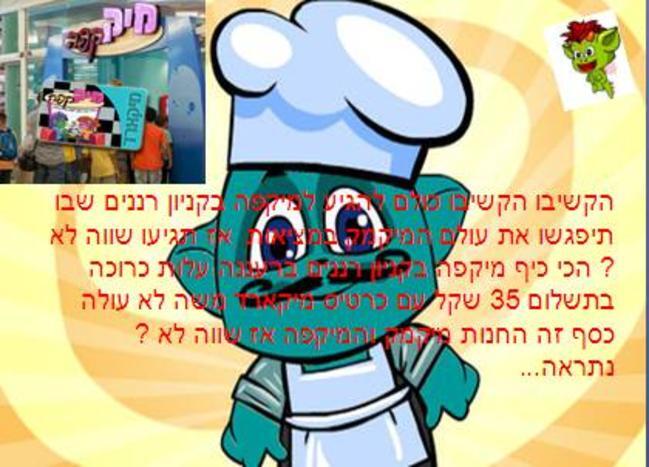 כולם להגיע למיקפה בקניון רננים לפי מה שאני שומע המקום מיקצוין! כולם להגיע אני מגיע שבוע הבא תגיעו כולם היה מיקצוין!