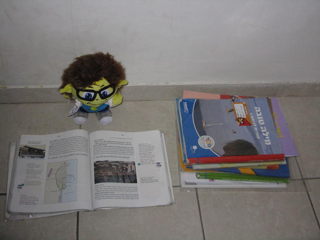 בתמונה רואים את סאני קורא את החומר לבית הספר תגיבו.