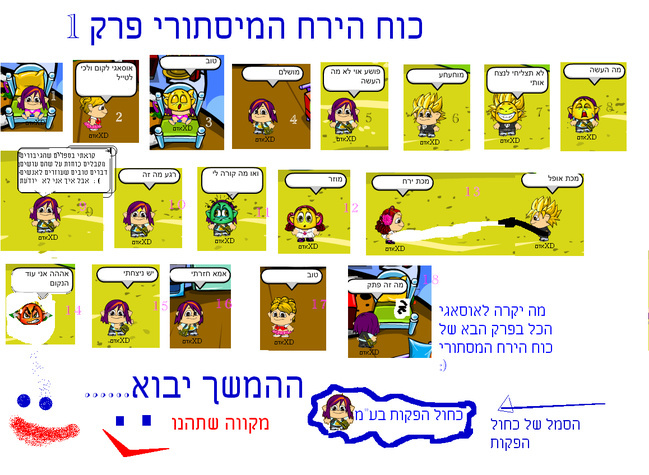 אני לא המשיך את הקומיקס כי אין הרבה תגובות אבל היה קומיקס אחר אבל לא הגיד את השם תיצתרכו שאני יעשה את הפרק ה1 טוב ביוש!!! |