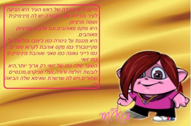 לתחרות דמות חדשה למיקמק הסדרה עשיתי משהו שעצבתי פעם את מיקה המיקמקית המהממת שמקס מתאהב בה בקרוב אעלה גם את המינימיקית שלה שאלוויס מתאהב בה