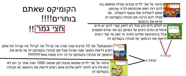 קבוצה א':חוגגים יומולדת.קבוצה ב':עתיד העתידים.