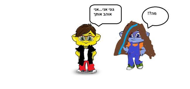 היה לי פתק על השולחן פתחתי אותו והיה כתוב בו לגוני בבקשה תפגשי אותי ליד עץ התפוחים בשעה שלוש ממני "מישהו" לא ידעתי מי זה אחרי הלימודים בעשרה לשלוש הלכתי לעץ התפוחים ומשם הגיע סאני שאלתי אותו מה הוא רוצה והוא אמר לי גוני אני אוהב אותך שאלתי מה הוא אמר אני אוהב אותך תמיד אהבתי אבל חשבתי שאת מחשיבה אותי רק כידיד ושאלתי אותו מאיפה הבנתה את זה? הוא ענה הבנתי את זה מאז שרוברטו בהה בך כל הזמן [רוברטו יושב ליד סאני] והסתכלת עליו בחזרה ואז שזואי סיפרה לי הבנתי שהסתכלת עלי אני נפרדתי מלינה הוא ירד על בירכיו ושאל גוני האם תיהי החברה שלי הסכמתי וחזרנו למעבדה יומן זה היום הכי מעולה בעולם |
