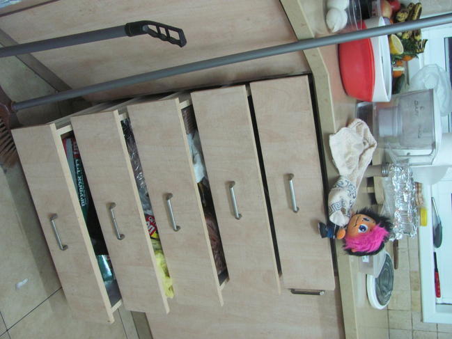 טוב רייני מנקה את הבית.והיא צריכה להגיע לשידה איכשהו! אז הנה סידרת מדרגות חדשה ^^