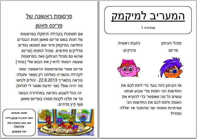 הנה המהדורה הראשונה של המעריב למיקמק המדברת על חנות הבגדים החדשה פרינס פאשן בקיווי בעיר בבקשה תעלו את זה
