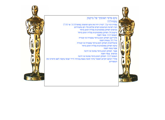 ישששששששששש מענין למי ינתין הפרס איזה מתח!! |