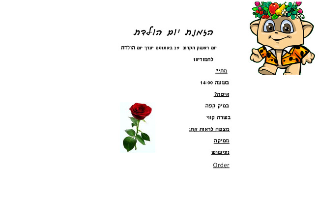 גם לי יש מיתקרב יום ההולדת והוא יהיה ב17/9 אבל אד אז אני יאסה הזמנות והכול אבל נחשו מה? נולדתי בערב ראוש השנה !!!! |