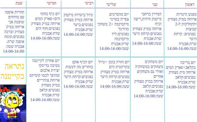 14.7-יום המשחקים נפגשים:קלאב שרת:אבטיח שעה:14:00-16:00