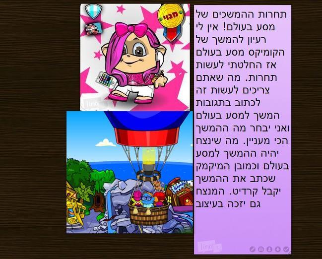אני מאוד אהבתי את הקומיקס שלך הוא היה מדהים ואת גם מיקמקית מאןד מוכשרת ויפה |