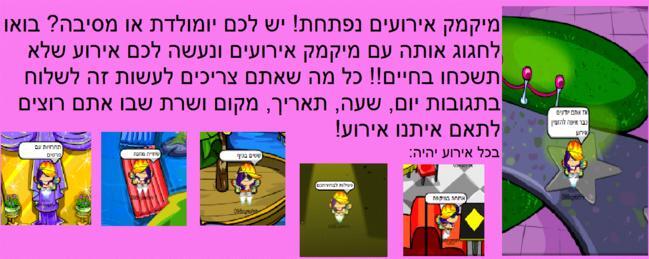 טוב אז ככה, אני עושה אירוע בכל יום שני בשעות:16-17 בשרת אבטיח במיקפה אז כולם להגיע!!! |