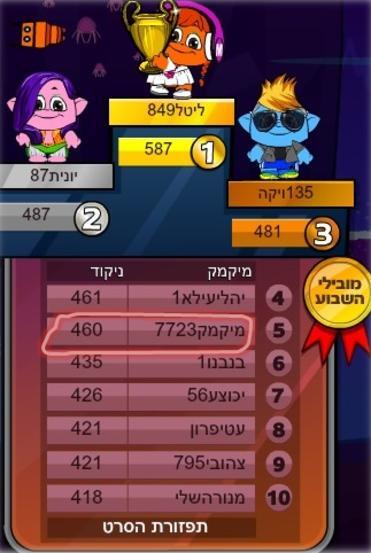 אני בעשרת המובילים במשחק החדש!!!