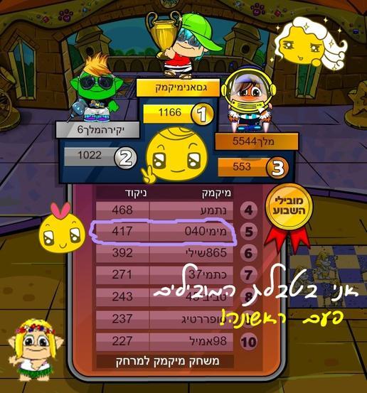 כל הכבוד! דרך אגב אני הייתי בכל מיני טבלאות מובילים |