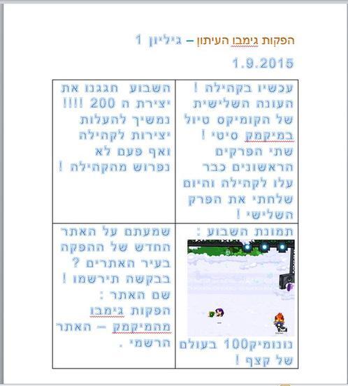 הפקות גימבו העיתון - גיליון 1