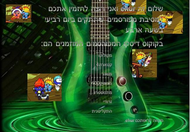שלום זה ehur וכולם מוזמנים למסיבת המפורסמים שתארח בקוקוס בדיסקו הפרטים בתמונה מקווה לראותכם כל מי שרוצה יכול לבוא ויהיו כמה שיקבלו עיצובים אז תבואו יהיה שווה ומקווה שגם המנהלים יבואו בבקשה טוב מי שבא ליכתוב בתגובות בבקשה אז ביי.