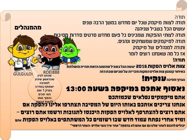 כדי לקבל את שאר ההודעות היכנסו לאתר אלויס הפקות
