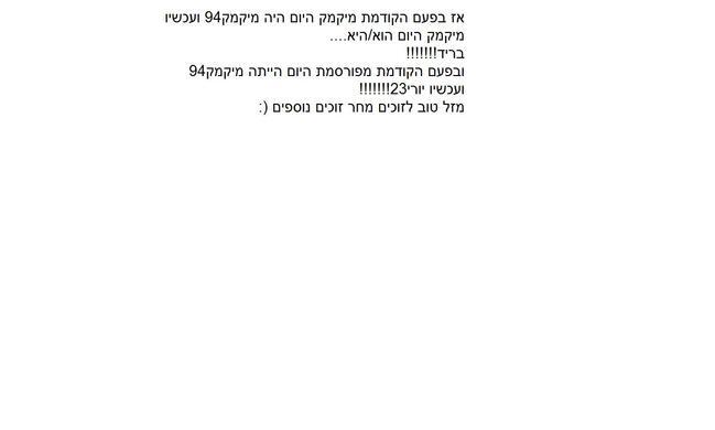בכל יום או פעמיים ביום אפרסם את מיקמק השבוע ומפורסם השבוע. הנה הזוכים של היום בהצלחה (:
