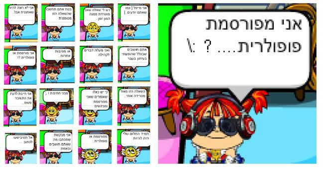 את מפורסמת מאוד ואני גם רוצה אני שולח דברים לקהילה אבל לא מפרסמים אותם ואני מאוד עצוב!! :( |