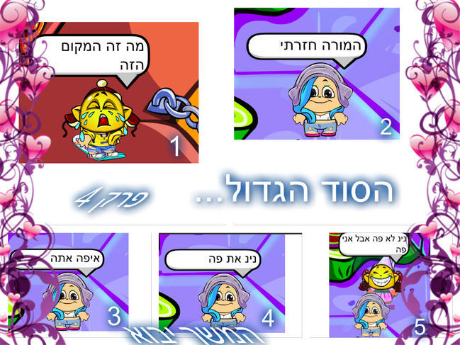 היי!!! אז רציתי להגיד כמה דברים... 1.אני יודעת שלא העליתי תמונה מלא זמן..הייתי בתקופת מבחנים אז לא היה לי זמן פנוי כל כך.. ~~~~~~~~~~~~~~~~~~~~~~~~~~~~~~~~~~~~~~ 2.הכנתי את פרק 4!! ~~~~~~~~~~~~~~~~~~~~~~~~~~~~~~~~~~~~~~ 3.סליחה שהפרק ממש ממש קצר...לא היה לי זמן לעבוד עליו:( ~~~~~~~~~~~~~~~~~~~~~~~~~~~~~~~~~~~~~~ 4.החידה הבאה תעלה מחר או מחרתיים!! ~~~~~~~~~~~~~~~~~~~~~~~~~~~~~~~~~~~~~~ 5.(הודעה אחרונה) כשאתם רושמים תגובות לחידות,תכתבו גם מתי אתם נפגשים איתי כדי שאצלם אותכם!!ואם אין לכם זמן פנוי,תעלו תמונה של המיקמק שלכם לקהילה ותקדישו לי כדי שאוכל לראות את התמונה! ~~~~~~~~~~~~~~~~~~~~~~~~~~~~~~~~~~~~~~ שיהיה יום ממקמק לכולם!!:) (מקווה לזכות תמונת היום:)