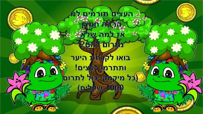 נכון מיקמקים חשוב מאוד לתרום לעצים אז בואו לקרחת היער ותתרמו אלף מטבעות מיקמק יאלה מחכה |