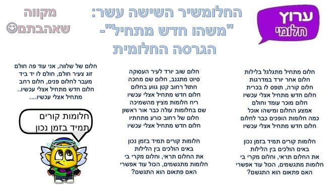 החלומשיר השישה עשר הוא: "משהו חדש מתחיל" של דני רובס שבגרסה החלומית הופך ל-"חלום חדש מתחיל"!