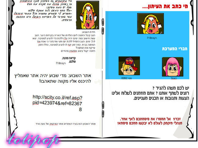 היי כולם מה קורה דבר ראשון כמה הודעות: 1. תודה ליהלול ותותי שבחרו בי להיות בכוכב הבא 2. פתחתי עיתון חדש הלוליפותון 3.מי שרוצה עיצוב מגניב לפנות אליי 4. בקרוב העתיד הורוד 2 ומדריך איך אני מעצבת ובו אראה את העיצוב החמוד שעשיתי עד כאן ביי